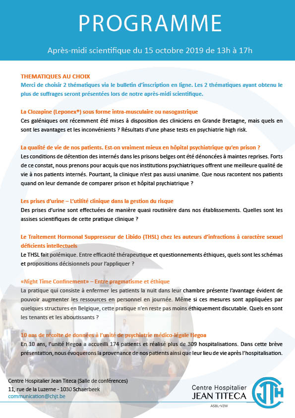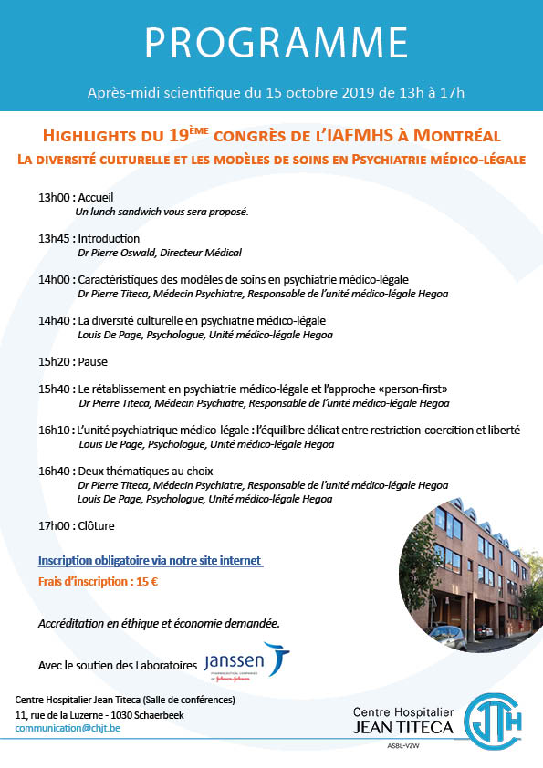 Cette conférence a été présentée par le Dr Pierre Titeca, Médecin Psychiatre, Responsable de l’unité médico-légale Hegoa & Monsieur Louis De Page, Psychologue à l’unité médico-légale Hegoa.